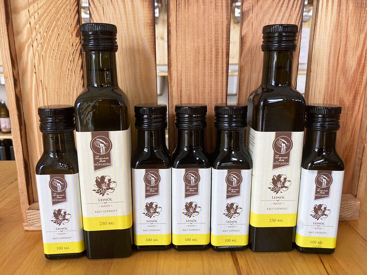 - Sonnenblumenöl, Rapsöl, Walnussöl, Leinöl und Sesamöl von der Porschendorfer Mühle